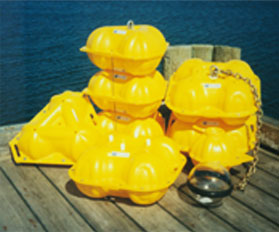 McLane Glass flotation, depth-rated to 7,000m, is ideal for moorings and custom instrument design such as ocean-bottom seismology instruments. Flotation modules with 12” borosilicate glass spheres have 10 to 40kg of buoyancy and are protected by polyethylene, high visibility hardhats.